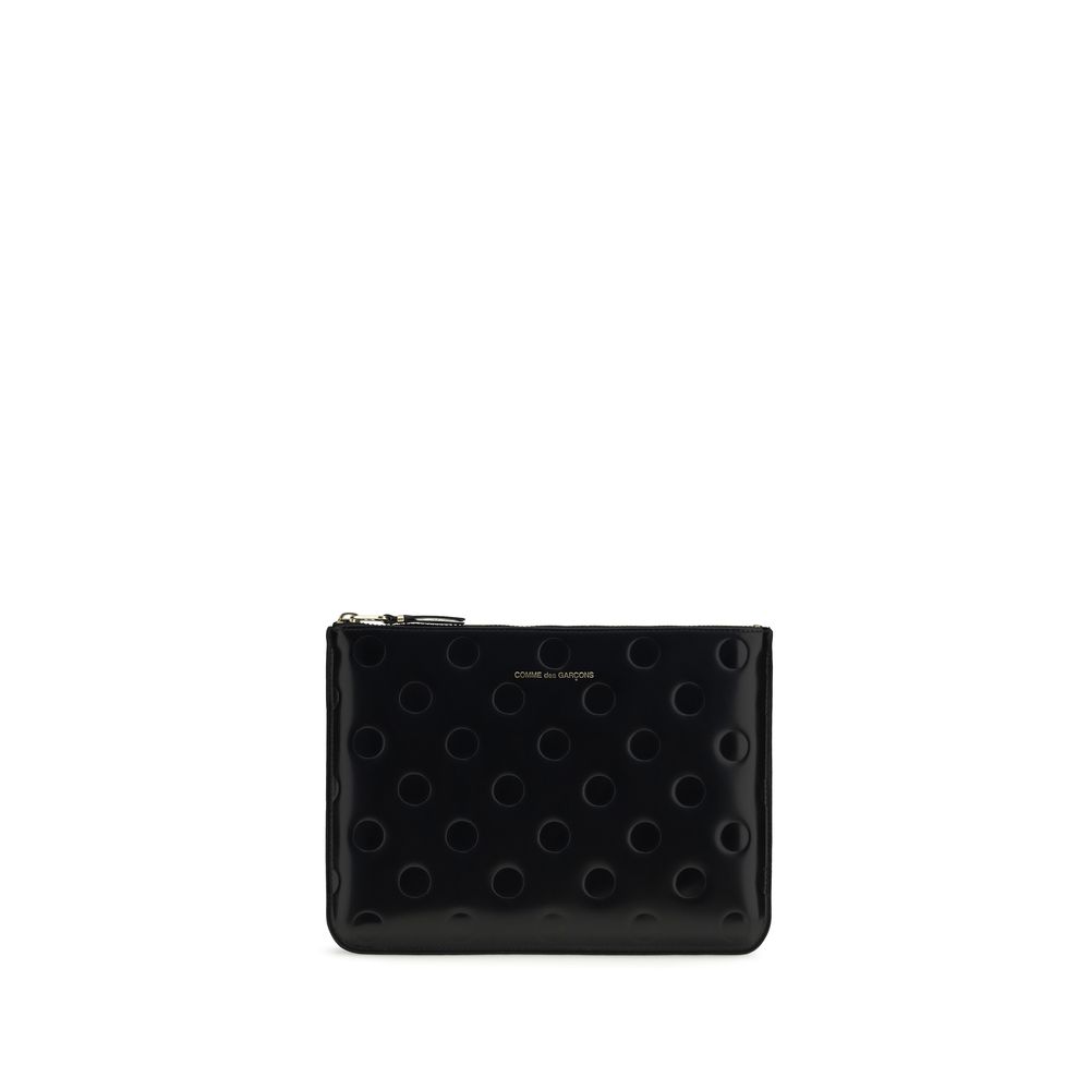 The embossed polka-dot Pouch by Comme des Garçons combines functionality with playful style. Featuring a single compartment and zip closure, it is enhanced by a gold-foil stamped logo, adding a distinctive touch of luxury. Perfect for stylishly organizing your everyday essentials.