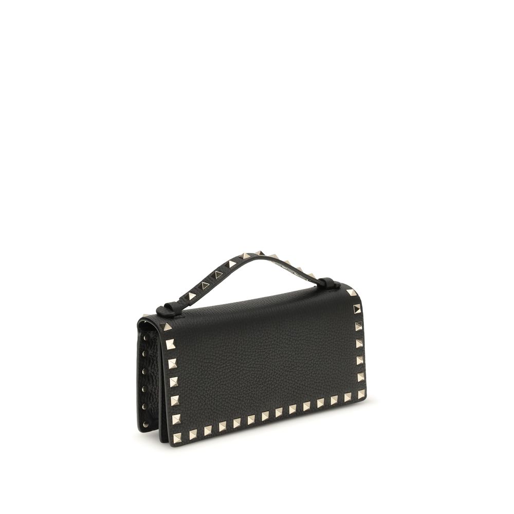 The Rockstud chain Wallet by Valentino Garavani combines practicality and iconic style thanks to the studs and metallic parts with Platinum finish, which enhance its distinctive character. The magnetic button closure ensures easy and immediate opening, while the interior offers a zippered wall pocket and card compartment, ideal for organizing essentials. Nappa leather lining adds a touch of softness and luxury, making this an elegant and functional accessory for any occasion.