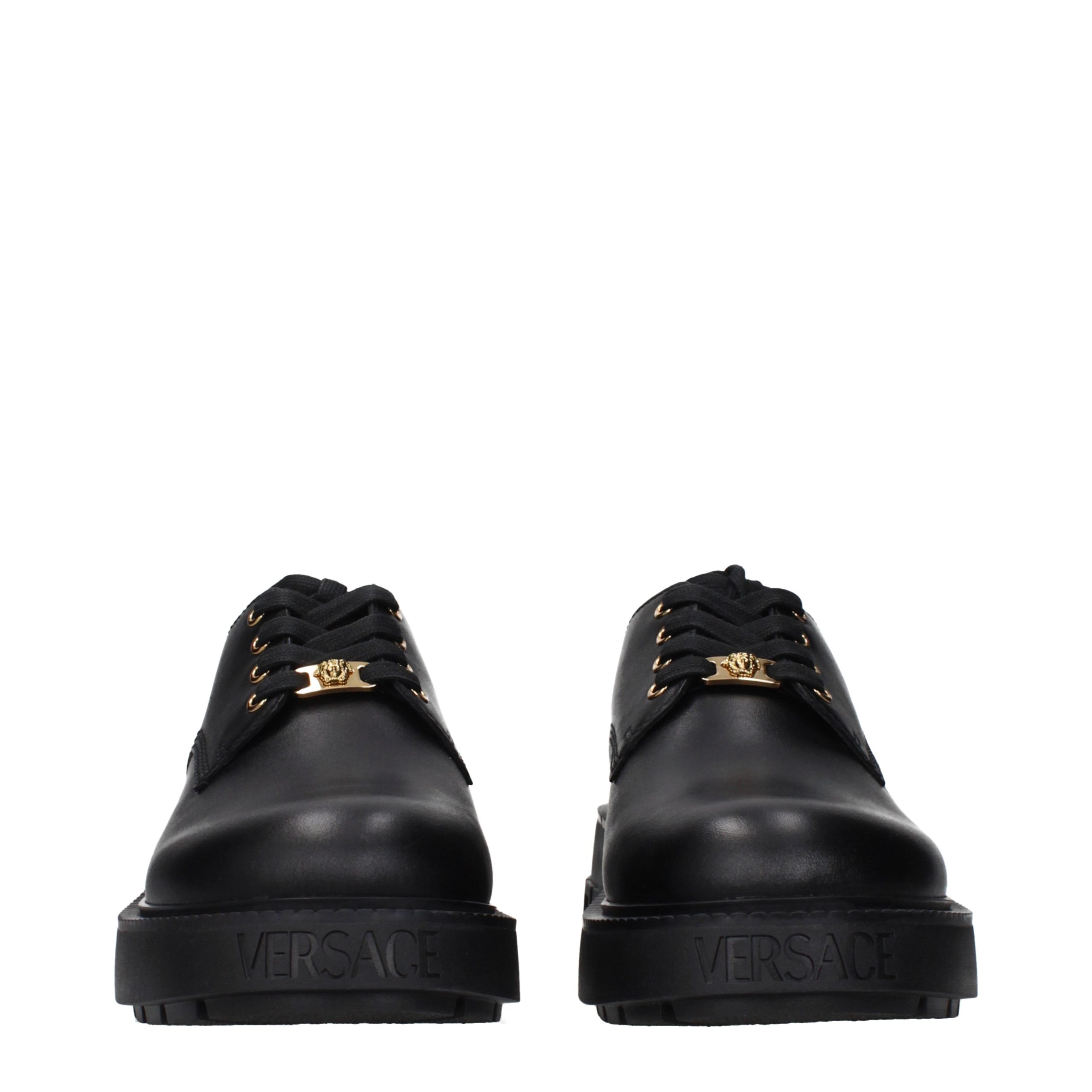 The product with MPN 10155951A127551B00V and code F86274 leather in black is a lace up and monkstrap designed by Versace. It has features like front detail, back detail.
