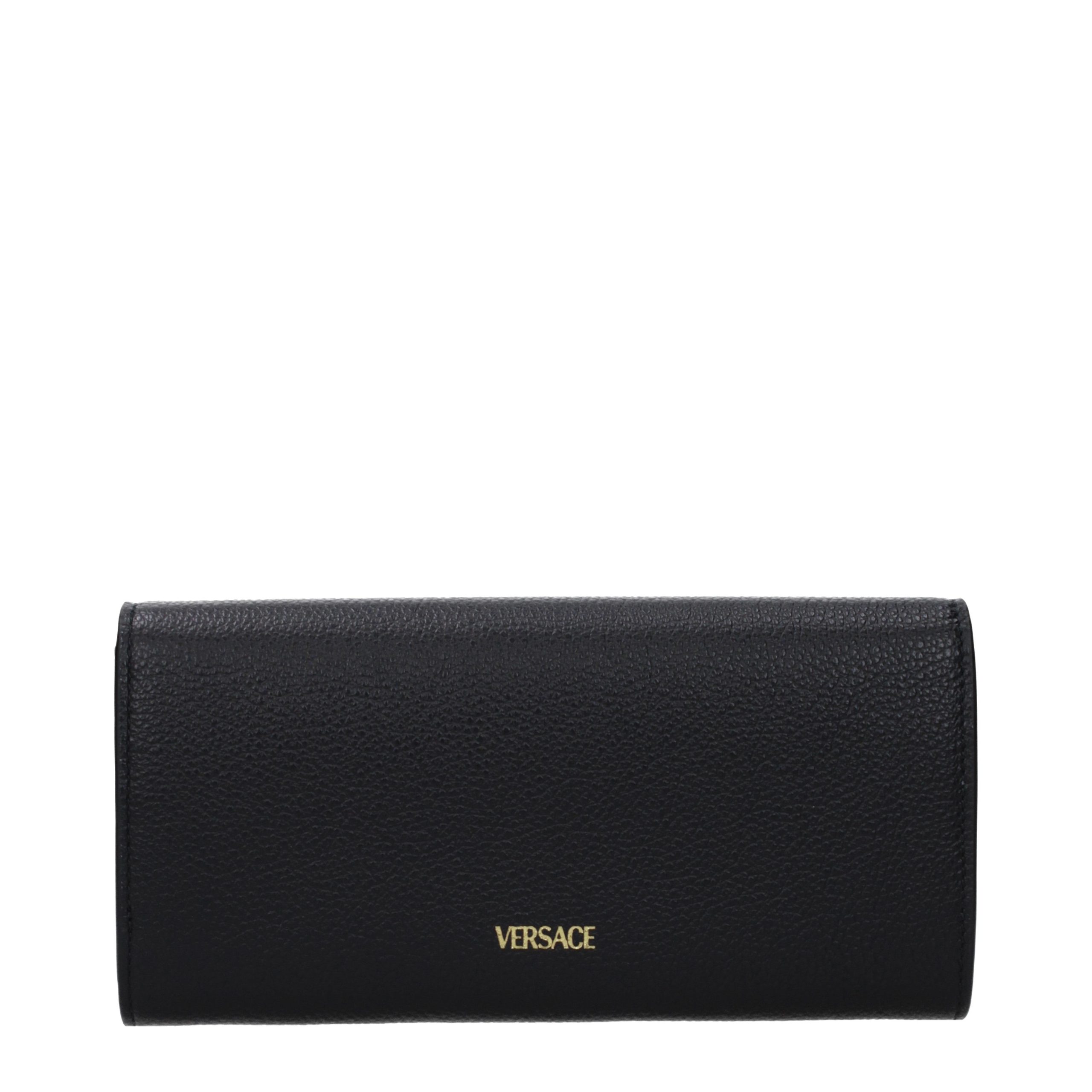 The product with MPN 10155801A173081B00V and code F86332 leather in black is a wallets designed by Versace. It has features like front detail, back logo.