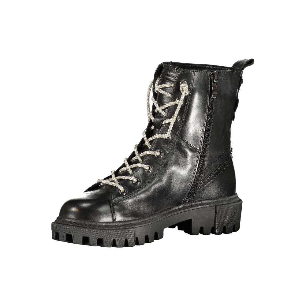 Elevate your edgy style with CAFENOIR’s striking Ankle Boot — a fusion of amphibian boldness and urban chic. This pair boasts a classic lace-up design complemented by a convenient side zip, all adorned with the unmistakable CAFENOIR logo, making them a must-have for those who dare to stand out. Crafted with a blend of premium materials, these boots promise durability and comfort. Perfect for the fashion-forward individual with a penchant for rebellion in their step.