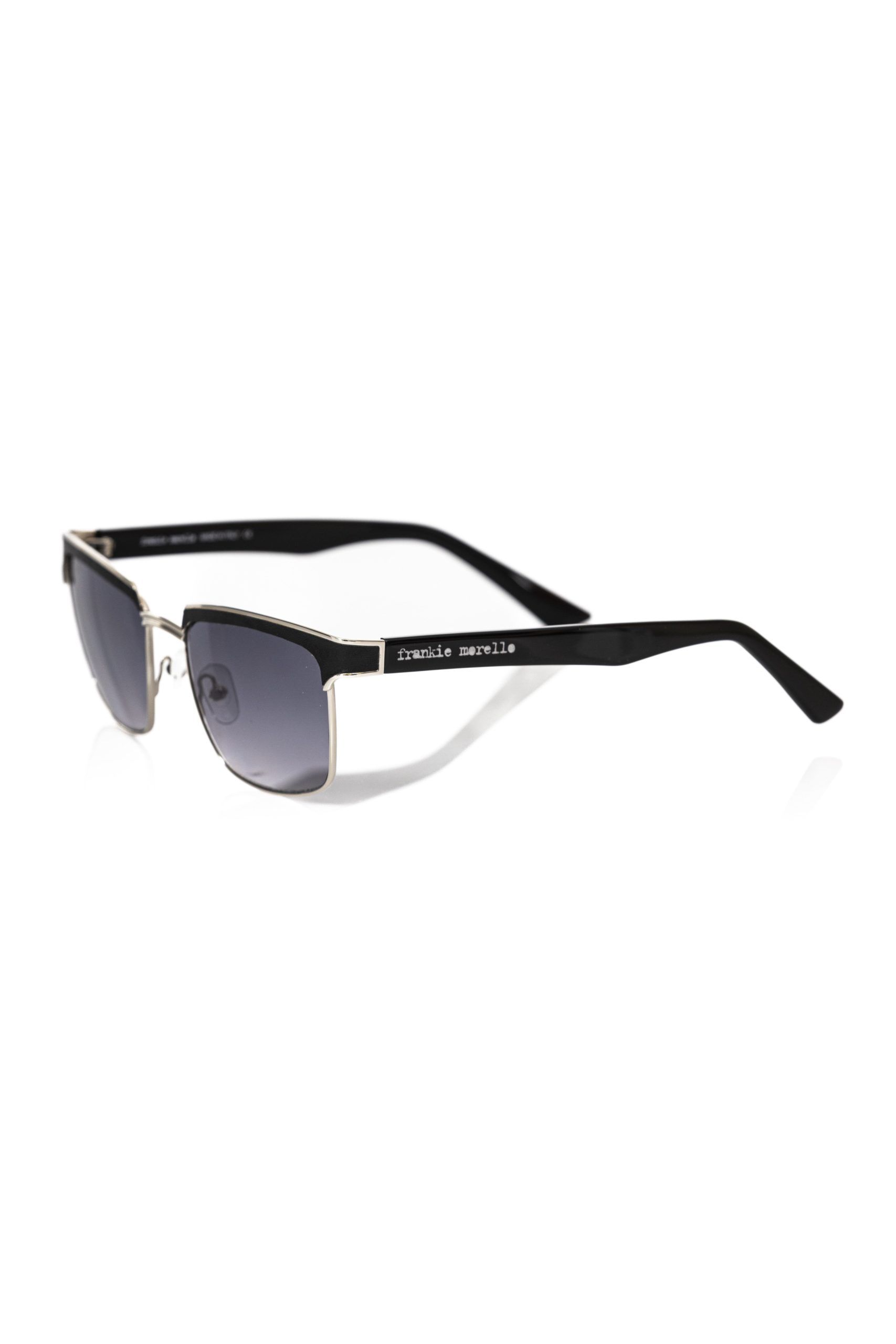 Indulge in the edgy sophistication of Frankie Morello with these Clubmaster model sunglasses. Meticulously crafted with an upper profile in luxe black leather, this pair is designed to exude confidence and style. The black shaded lens are quintessential for a fashion-forward statement, while the sleek black arms ensure a refined finish. Perfect for trendsetters seeking to make their mark with an iconic Italian touch.