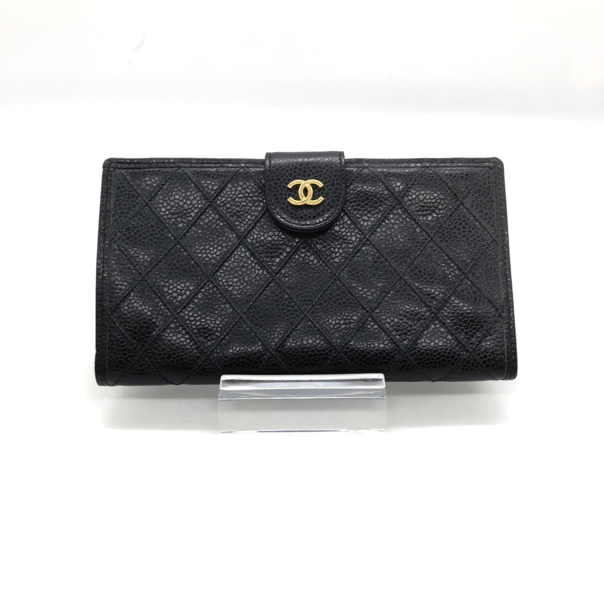 This wallet comes complete with its original box and dustcover, preserving its authenticity and making it a perfect gift or collector’s item. The included serial number further attests to its genuine Chanel heritage. The rich black color enhances its versatility, making it a perfect accessory for any ensemble. Graded B+ for its very good condition, this wallet is a testament to Chanel’s enduring quality and design. Don’t miss the opportunity to own a piece of fashion history that combines practicality with unparalleled elegance.