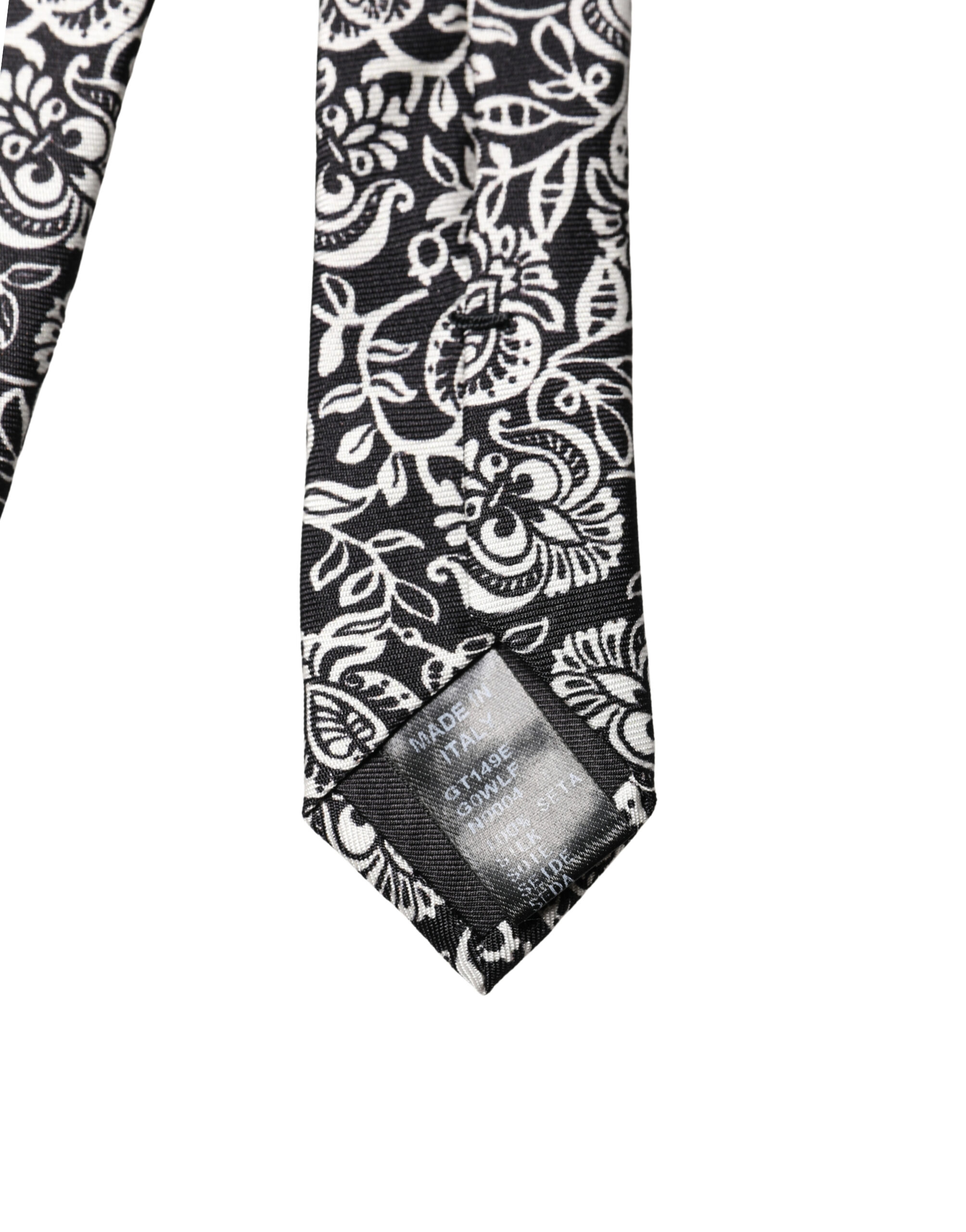 necktie is crafted from luxurious silk and features a black-and-white floral fantasy print. The adjustable design ensures a perfect fit, adding refined Italian flair to formal and contemporary looks.