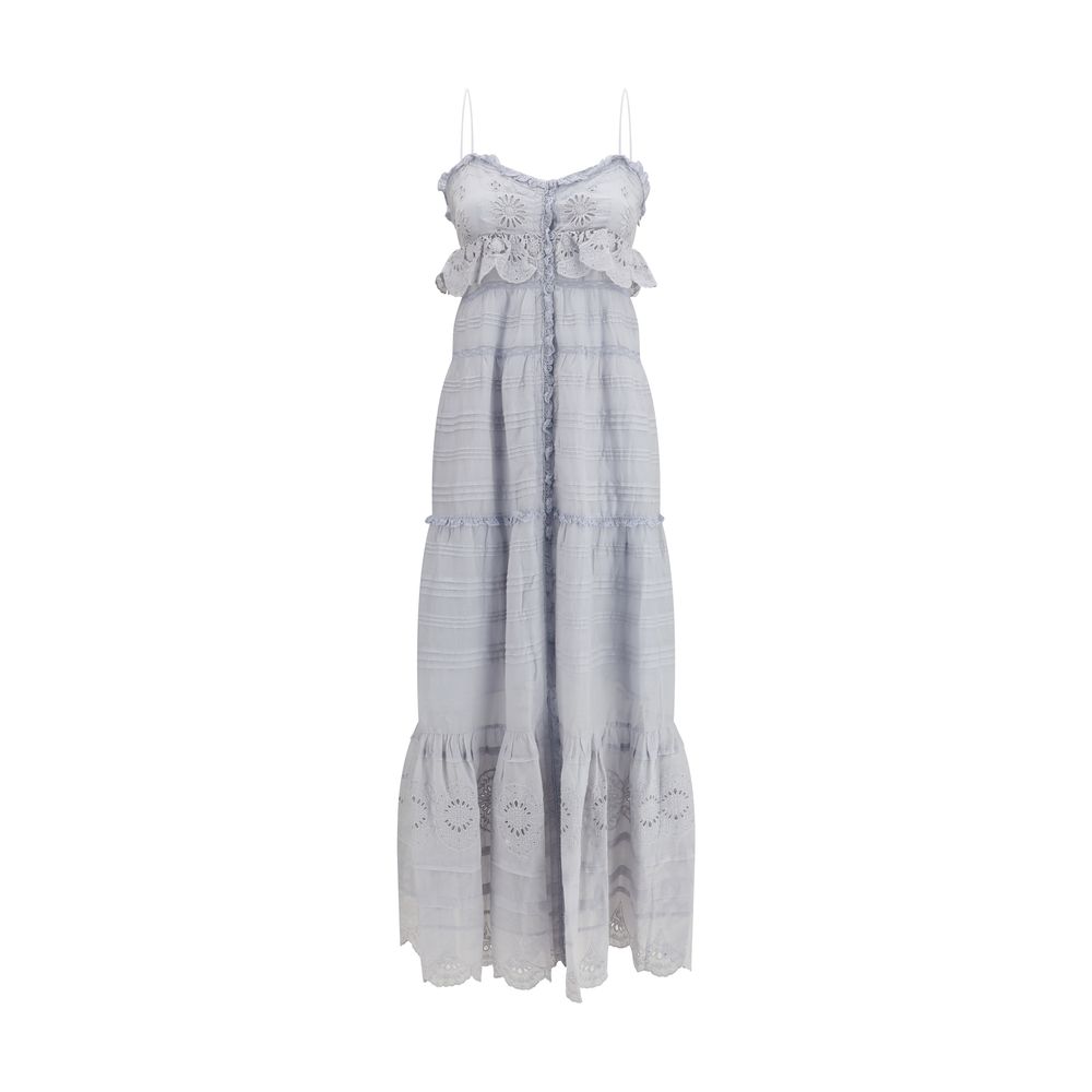 The Paule long ruffled Dress by Marant Étoile reflects the brand’s feminine and effortlessly romantic aesthetic. The design is defined by mesh details and delicate ruffle trims that add movement and lightness to the silhouette. The button fastening introduces a classic touch, while the tiered construction enhances the fluid shape of the dress, making it ideal for elegant yet relaxed styling.