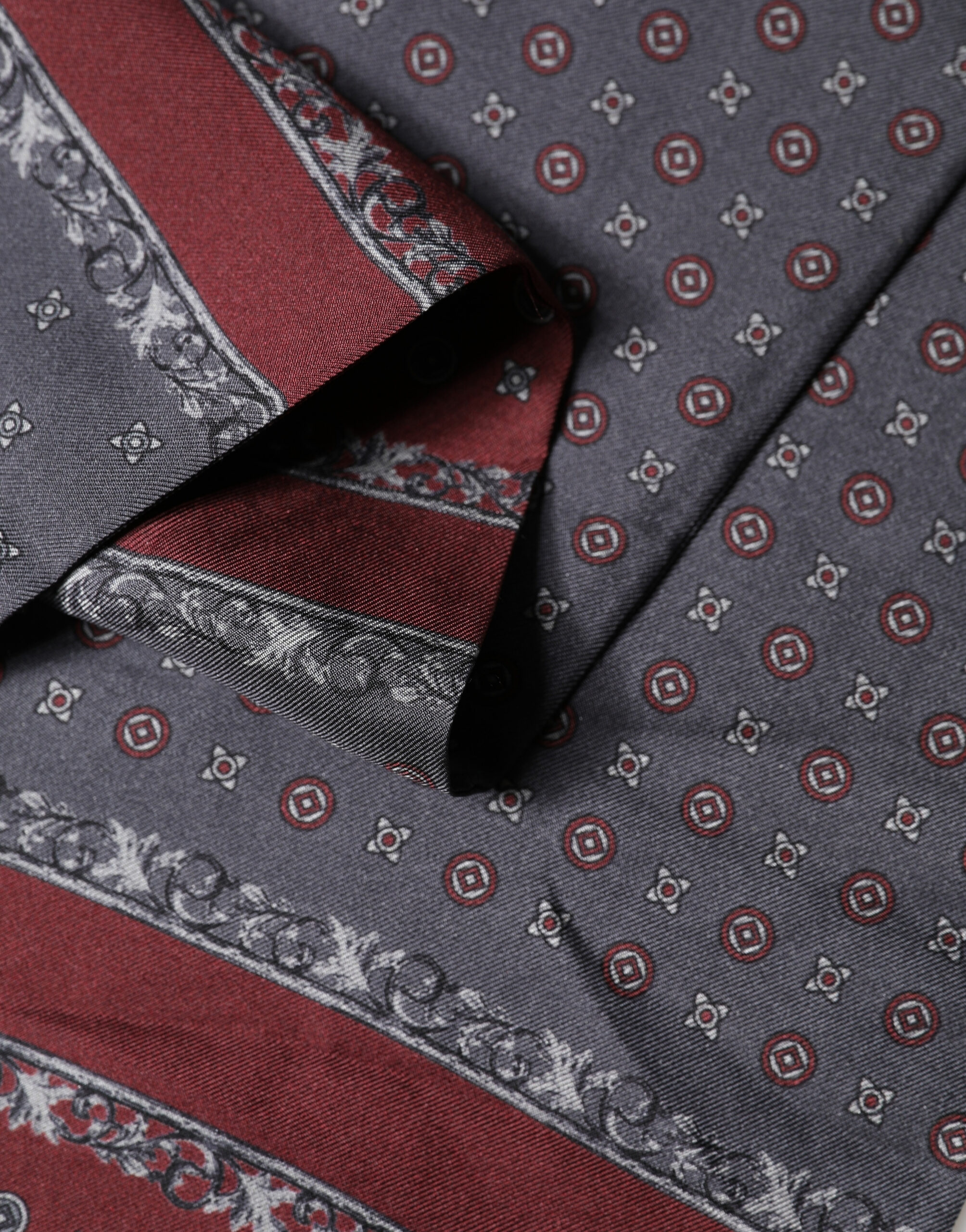 Gorgeous brand new with tags, 100% Authentic Dolce & Gabbana scarf.This elegant piece features a refined burgundy and gray patterned design with classic ornamental detailing, finished with delicate fringed edges. Crafted from pure silk, it offers a smooth, lightweight feel and timeless sophistication—perfect for both formal and elevated everyday styling.