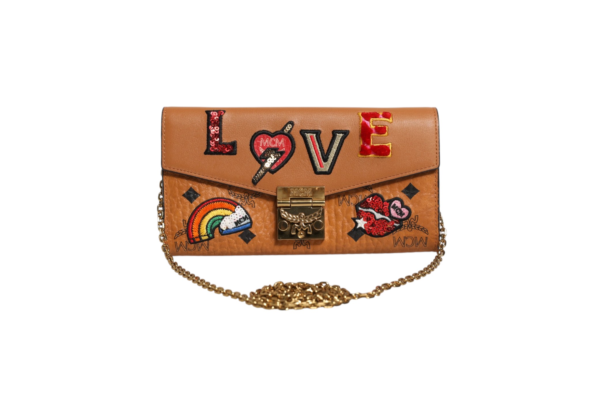 Cognac Brown Coated Canvas Visetos Patricia Love Patch Wallet-on-chain