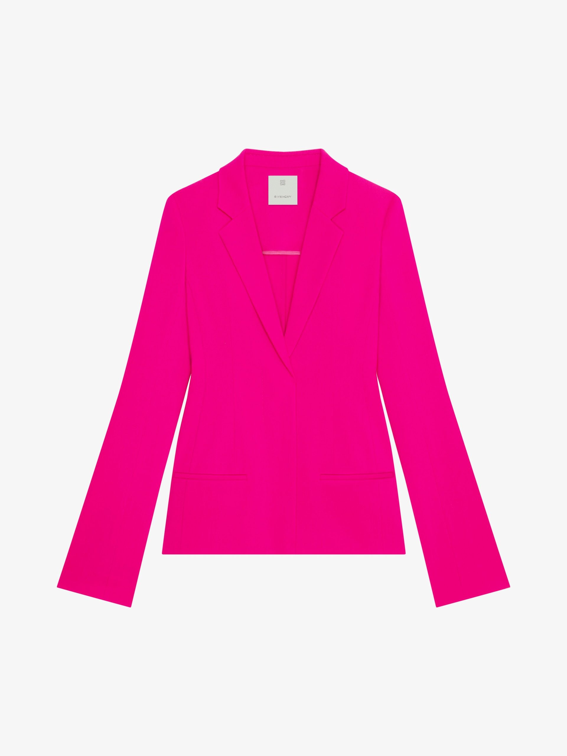 Unleash your inner fashionista with the stunning GIVENCHY Women’s Single Breast Bell Sleeves Jacket. This eye-catching piece exudes confidence and style, with its vibrant fuchsia hue and dramatic bell sleeves that ensure a commanding presence. Crafted with meticulous attention to detail in Italy, this GIVENCHY jacket is the epitome of luxury and will elevate any ensemble to haute couture status. Perfect for the bold trendsetter ready to make an unforgettable impression.