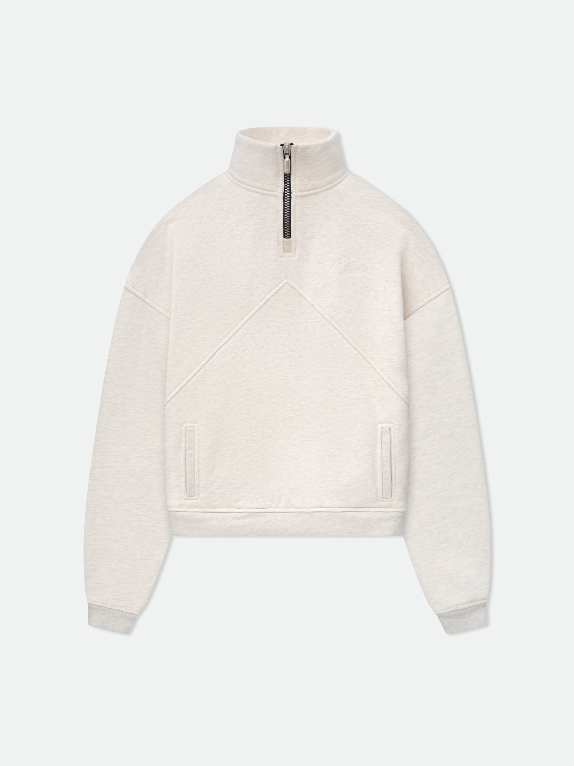 Embrace the bold fusion of luxury and streetwear with RHUDE’s stellar Quarter Zip. Crafted from high-quality materials that showcase a trifecta of comfort—cotton, lyocell, and polyester, this piece is a testament to impeccable Italian craftsmanship. Cloaked in a sublime oat hue, it’s a versatile addition to your wardrobe that screams high-end trendiness. Tailored for the fashion-forward individual, RHUDE takes your style quotient up a notch while ensuring you stay cozy in a chic silhouette.