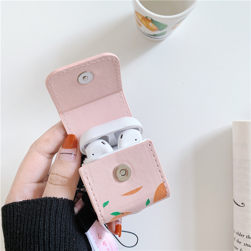 Color: Peach Leather Earphone Cover, Many Peach Leather Earphone Cover, Orange Leather Earphone Cover