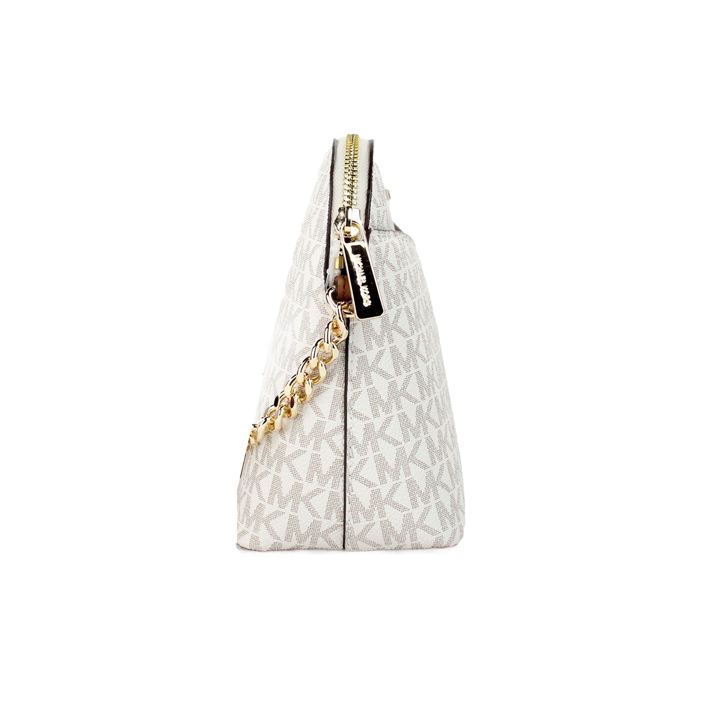Introducing the Michael Kors Women’s Back Slip Pocket Signature Canvas Crossbody Bag in a sophisticated Vanilla hue. This stylish accessory perfectly combines functionality and elegance, making it an essential addition to any wardrobe. Crafted from high-quality PVC with a sleek satin finish, this medium-sized crossbody bag is designed to suit various occasions, including travel, weddings, parties, and casual outings.