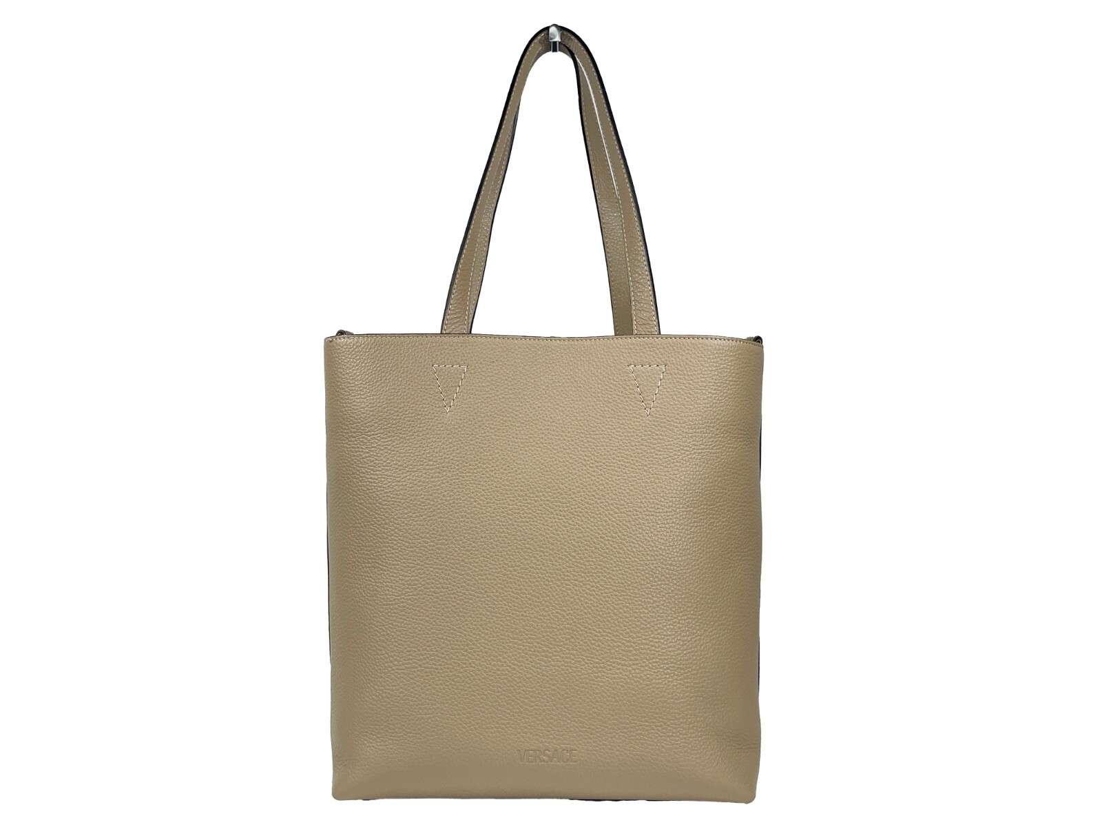 The Versace Medusa Large Leather Tote Bag with Pouch is an exquisite blend of sophistication and functionality, embodying the elegance synonymous with the Versace brand. Crafted from high-quality pebbled leather in a chic taupe hue, this tote features the iconic Medusa coin emblem that adds a touch of luxury to any ensemble. The carefully designed double handles and detachable strap provide versatility, allowing you to transition effortlessly from professional settings to casual outings.