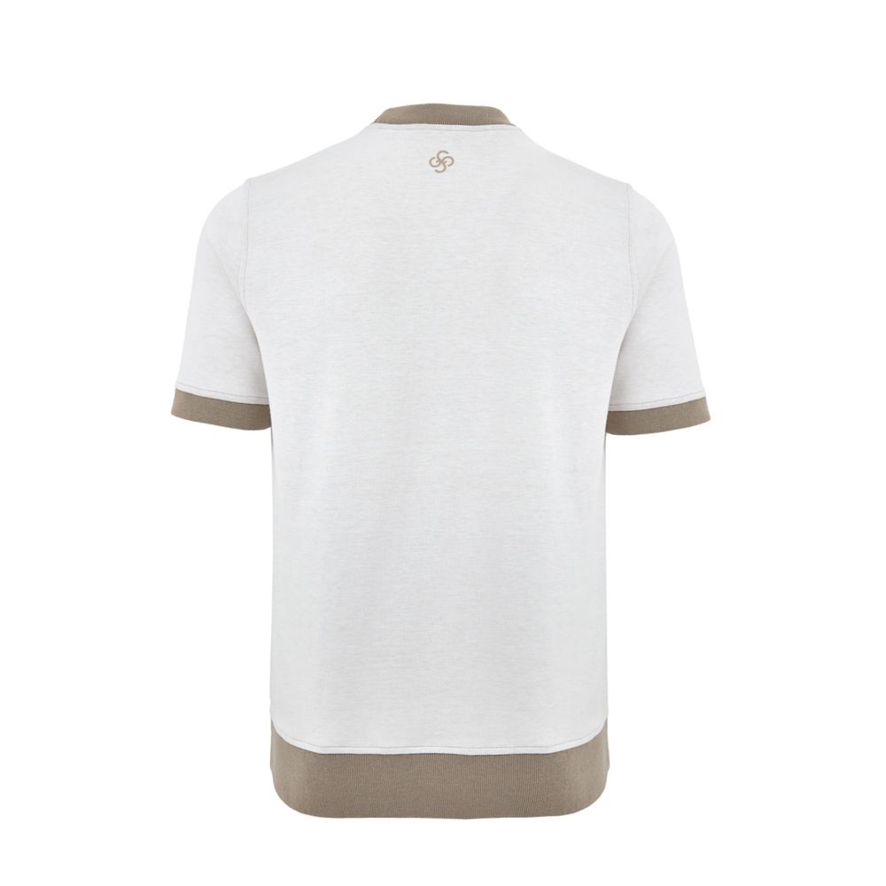 Regular fit. In off-white, beige contrast knit crew neck, short sleeves, contrasting ‘Gran Sasso 1952’ logo print on the front.