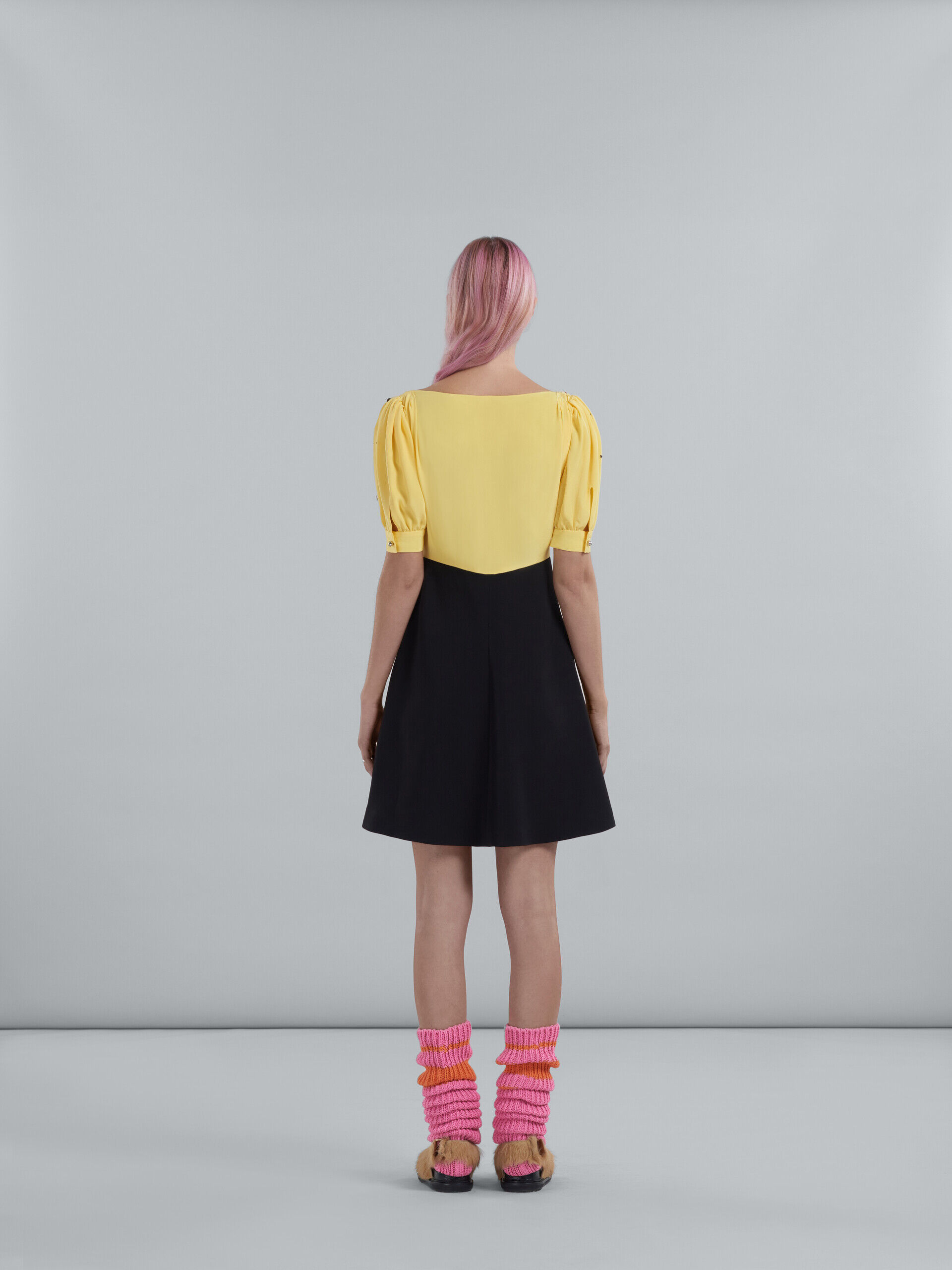 Elevate your wardrobe with the distinctive flair of MARNI’s lemon-hued dress. A testament to Italian craftsmanship, this stunning piece boasts clean lines and a contemporary cut that exudes confidence. Perfect for those who dare to stand out, MARNI’s creation is more than just a dress—it’s a fashion statement.